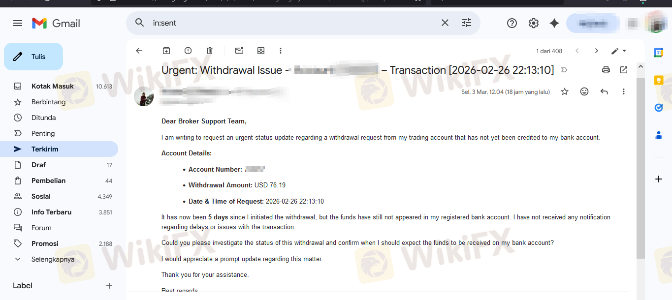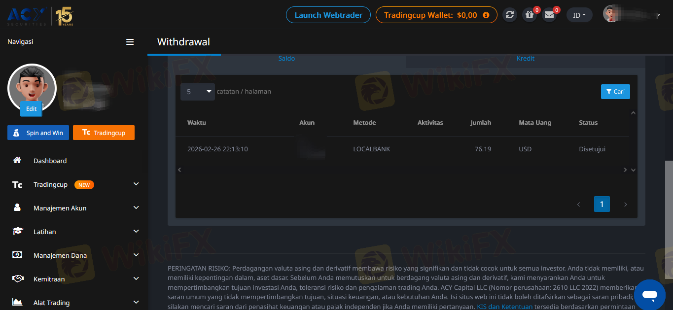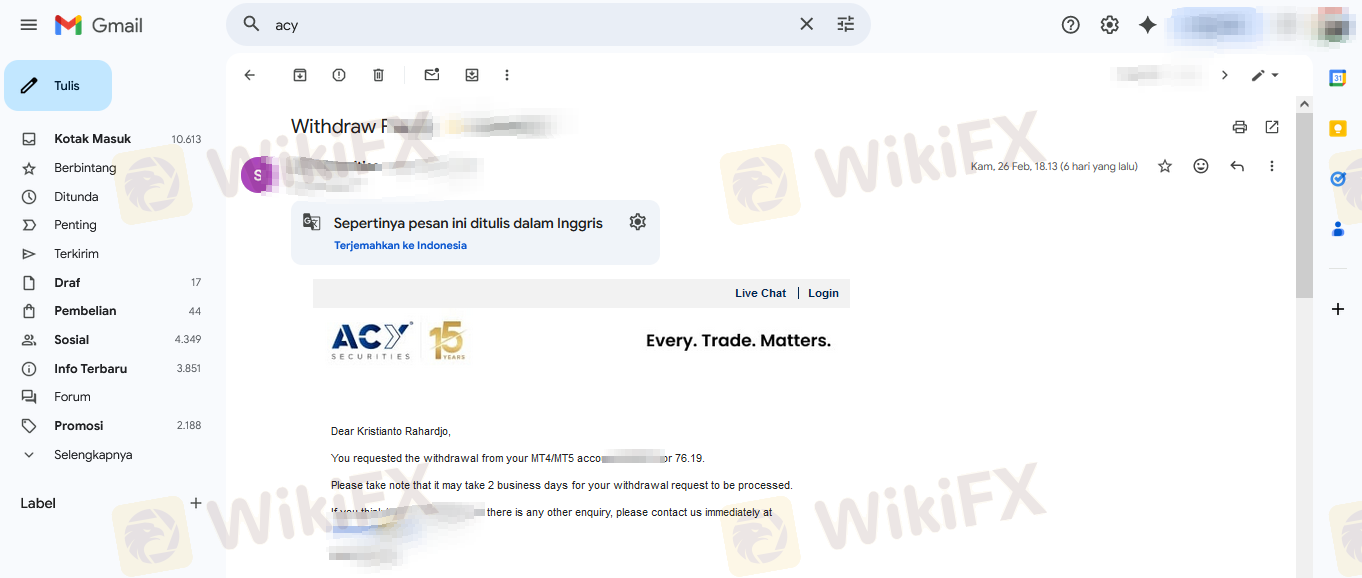 詐騙警報:提款已獲批准但資金從未收到 我已經等待我的提款6天了。我的儀表板上的狀態顯示為「已批准」,但這筆錢從未進入我的銀行帳戶。 提款日期:2026-02-26 這是典型的詐騙經紀商跡象。他們在其網站上將其標記為「完成」或「已批准」,以使其看起來像是已經支付給你,但他們實際上是在內部扣留資金。我已聯繫客服,但沒有得到解決。 如果您正在考慮與ACY Securities進行交易,請遠離他們。他們可能會讓您存款和交易,但不會讓您提取自己的資金。 我要求經紀商立即調查此事並釋放我的資金。一旦錢到手,我將更新此評論,但在那之前,請將此視為警告。