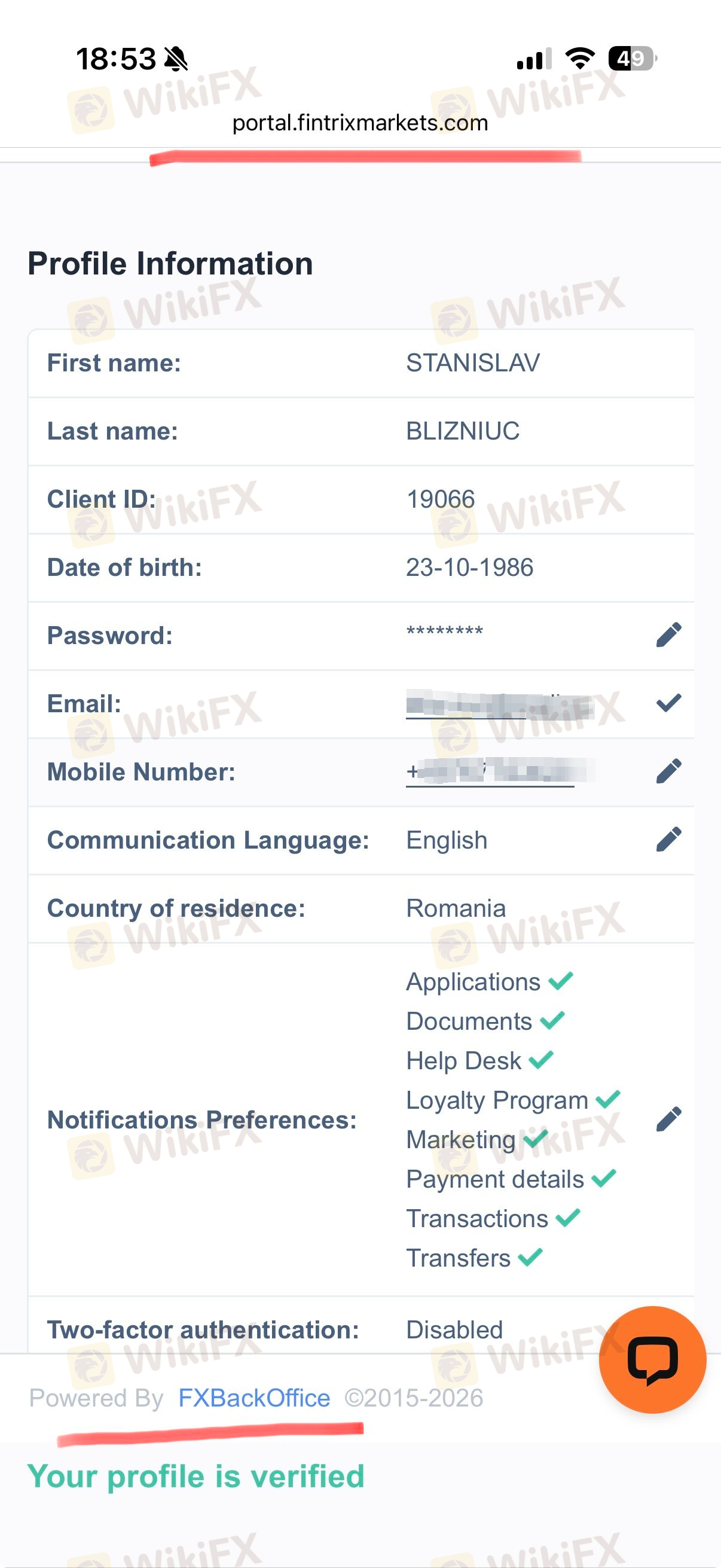 一項關鍵的安全政策要求,提款只能發送到與交易帳戶持有人姓名相同的帳戶;禁止第三方提款。雖然提款請求通常在同一個工作日內處理,但資金到帳時間取決於所選方法。Fintrix Markets 聲明其對交易不收取內部費用,但指出第三方供應商(例如中介銀行)可能會對charges.All交易是透過客戶入口網站進行的。為了安全及遵守反洗錢法規,該公司可能會要求提供額外文件以驗證身份,特別是首次提款時。提供 24/7 的支援以協助處理任何問題。