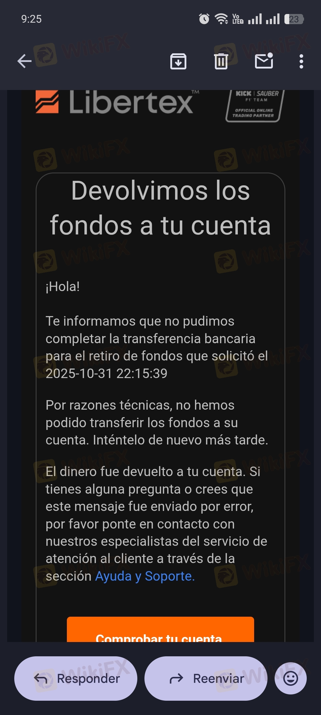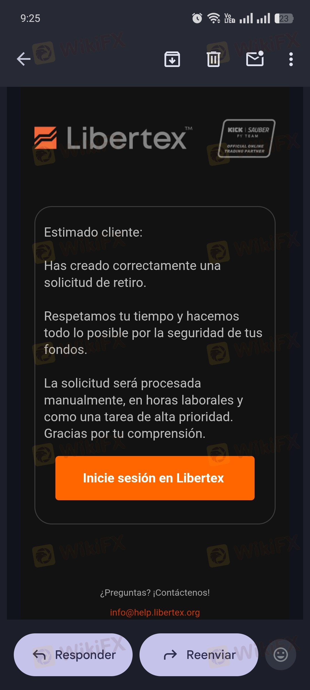 我曾與Libertex經紀合作,並沒有遇到任何問題,我可以順利存款和提款。然而,我的利潤少於1,000.00美元。但是,一旦我成功獲利,我的帳戶中就有了3,141.52美元,自2024年9月19日星期五以來,我的提款尚未處理。在2024年9月24日星期二,打電話後,我收到一封通知,說我的帳戶未經驗證。所以我上傳了驗證數據。並且說我將在1至2個工作日內收到回覆。第二天,2024年9月25日星期三,我登錄應用程序,有一個通知說,如果我不添加一個顯示他們公司名稱、存款金額、日期和時間、我的電子郵件地址、付款平台鏈接以及我用來付款的公司徽標的付款方式截圖,我的帳戶將被暫停。