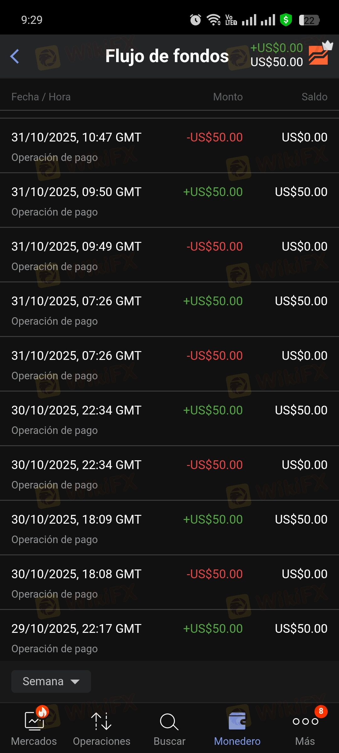 要在平台上存入資金非常簡單,會有人打電話給你,說會全程協助你。當你完成付款後,他們會告訴你第二天會再聯繫你,但他們並沒有這樣做。至於提款,你需要提交申請,有些會被接受,有些則被拒絕,但情況總是如出一轍——他們會說正在將款項轉入你的帳戶,之後又說無法完成操作,請技術人員處理。這真的是一個非常糟糕的平台。從圖片上看,我確實充值了50美元,但當我想提取時,平台卻顯示好像已經提領了,但實際上款項又被退回了帳戶。