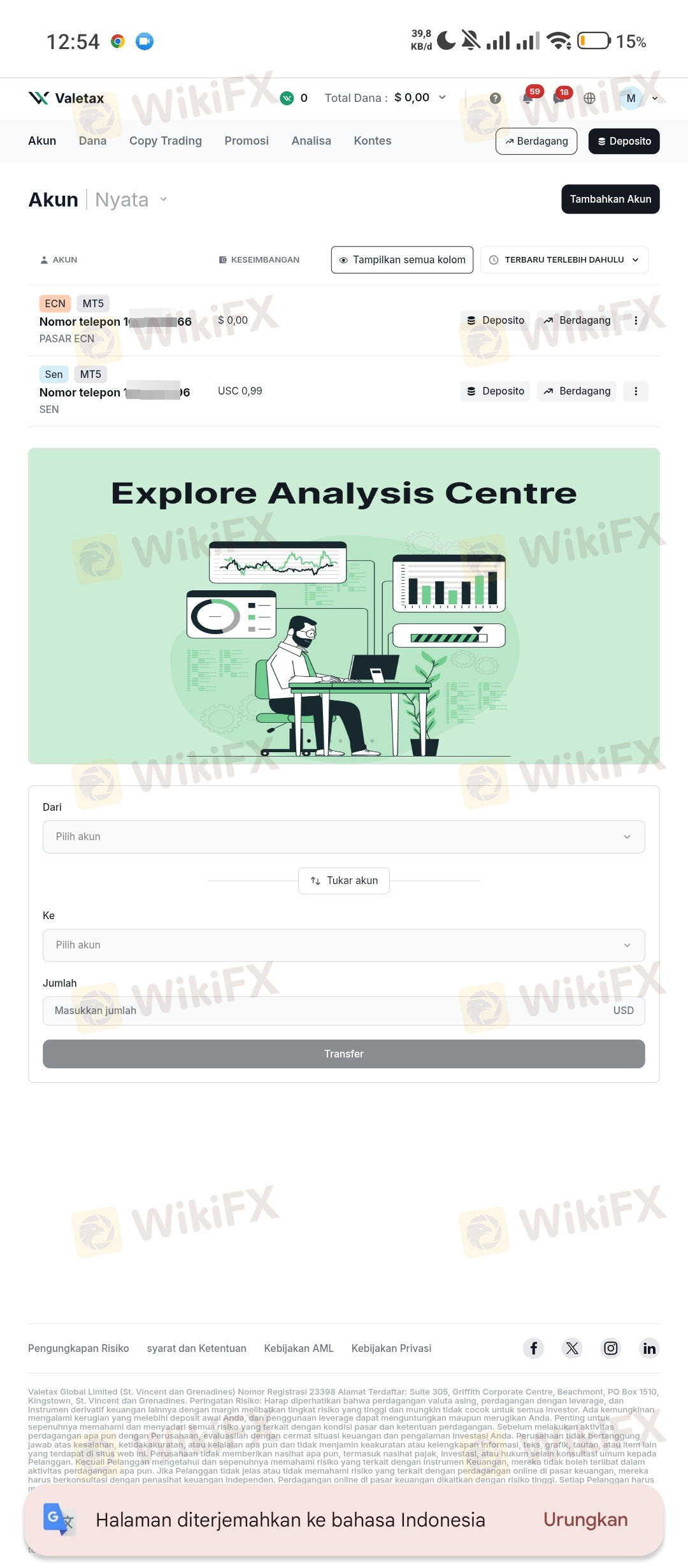 VALETAX INTERNATIONAL LIMITED 是一家專門提供線上投資和交易服務的毛里求斯投資經紀商。可交易的工具包括貨幣對、指數、金屬、加密貨幣和能源。該經紀商還提供六種帳戶,最高槓桿為1:2000。最低點差為0.0點,最低存款為$1。由於其離岸監管地位、高槓桿和一些負面評論,Valetax 仍然存在風險。