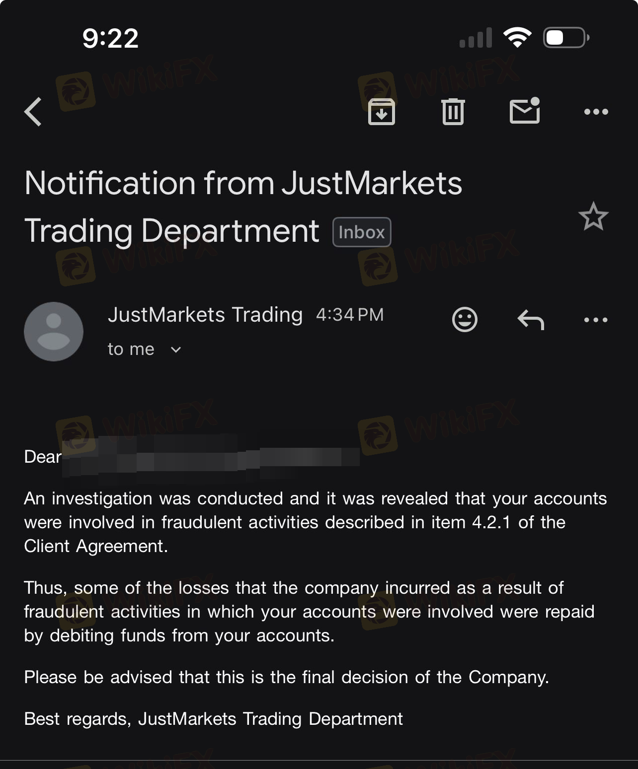 2025年3月6日,我被說服與JustMarkets進行交易。 JustMarkets發起的交易讓我們獲利。然而,這家詐欺機構使用他們自己的軟體幹擾了我的交易,導致我損失了1000美元,帳戶也被封鎖了。這家機構的員工既是騙子,也是詐騙犯。我建議你一定要小心。