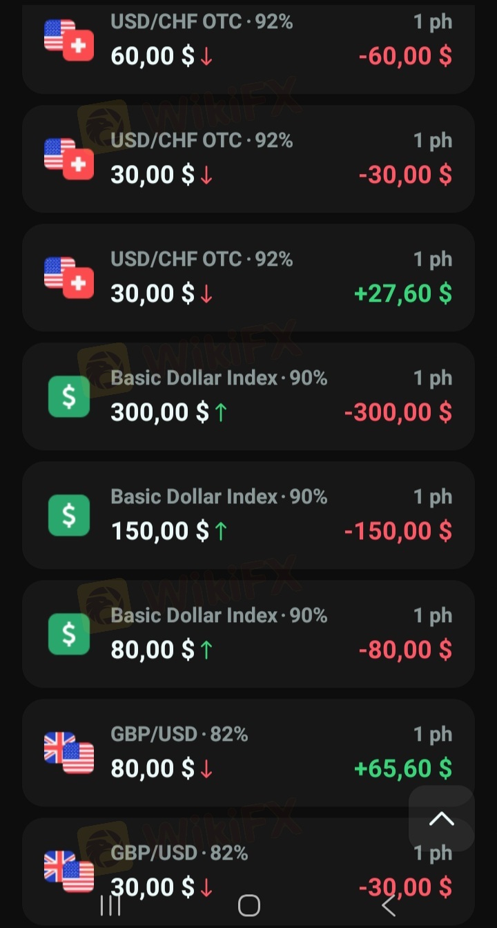 在該平台交易超過四年期間,我密切監控自己的交易,並觀察到「我的大部分交易經常在最後一秒鐘發生虧損」。有許多情況是「收盤價等於開盤價」,但我仍然在那筆交易中虧損。奇怪的是,「當我後來查看交易歷史時,發現價格已被更改」。 我懷疑經紀商/平台一直在干預我的交易,持續導致我在最後一秒鐘虧損。尤其當我投入大筆資金時,他們會策劃一系列連續的虧損交易,導致帳戶反覆爆倉。 以下是一系列連續虧損交易導致帳戶反覆爆倉及頻繁最後一秒虧損的截圖。我分享這些是為了讓大家在這個平台交易前能加以考慮。儘管他們聲稱,但這個平台遠非可信。