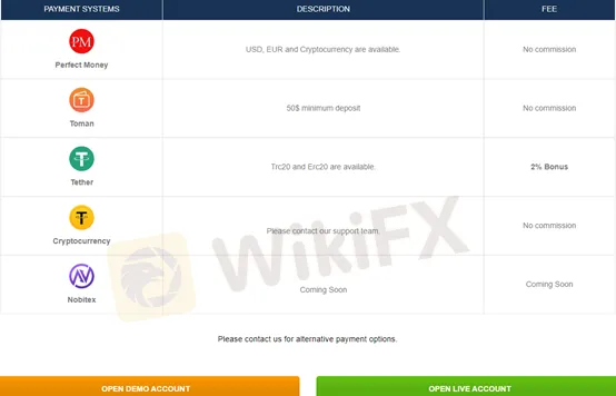 Tether-Trc20 and Erc20 available, with a bonus of 2%.