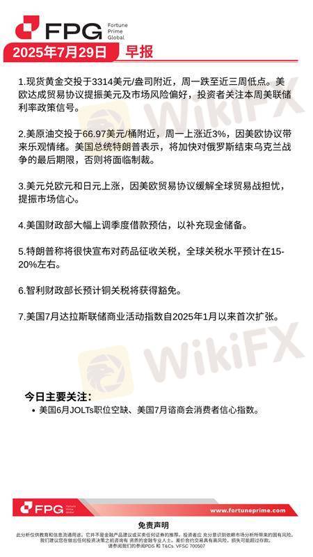 - 美元强势回升:受到美欧协议刺激,市场风险情绪转好,避险资产如黄金遭抛售