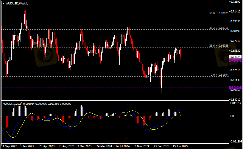 周线图显示澳元兑美元回调下跌,当前承压于0.66关键阻力。 从MACD来看,快慢线呈拐向,白色动能柱温和收缩。汇价走势基本和动能柱的变化一致。