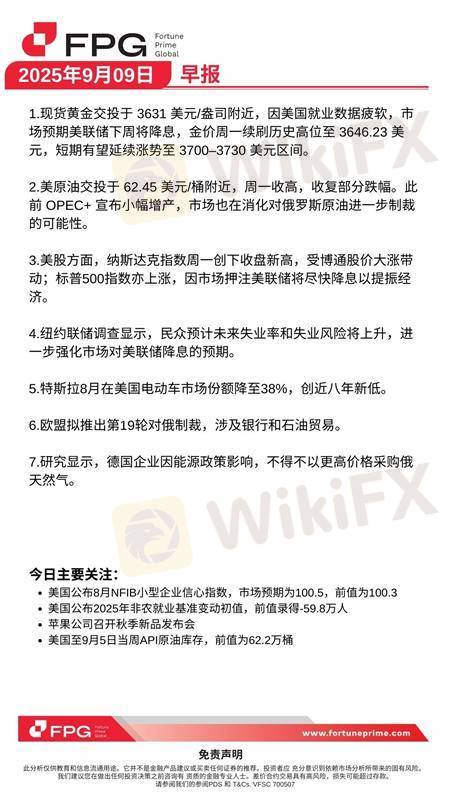 業內✨09月09日 市场速递 | 黄金再创纪录高点,年内或继续宽松? ✨