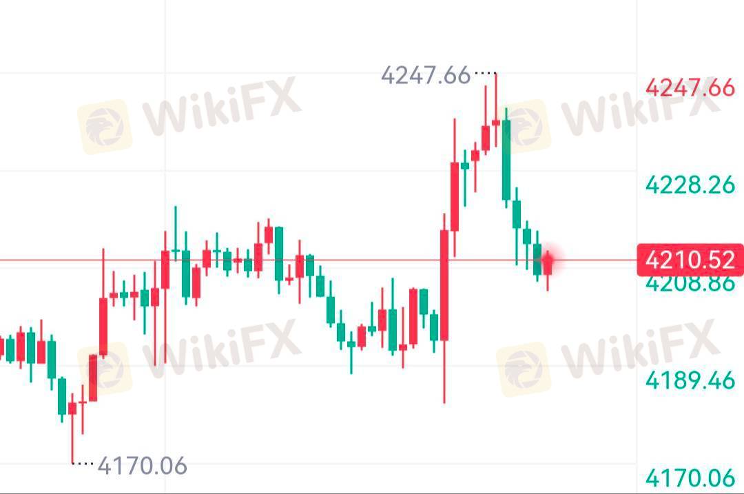 早盘黄金冲高后出现技术性回落,此为突破后常见的技术性整理过程。当前价格企稳于4200关键支撑上方,且已成功上破昨日压力位4230,整体结构仍处于多头框架之内。