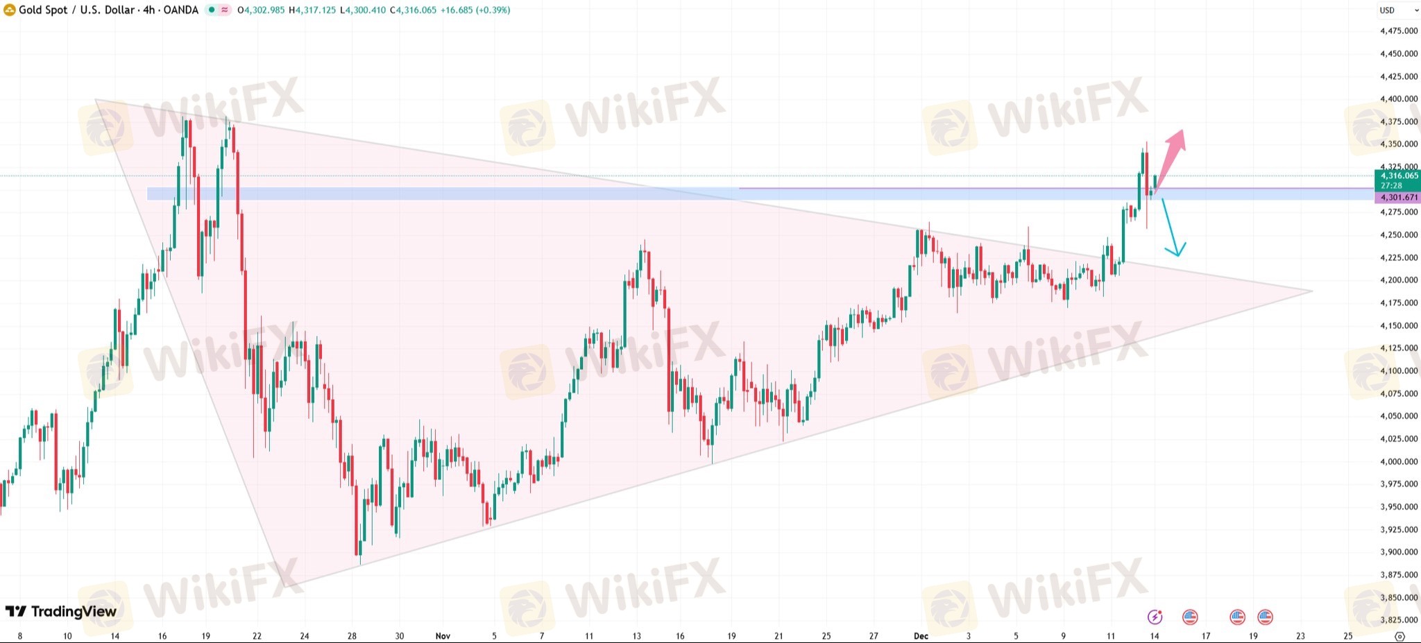 从关键价位观察,周五回落低点位于4257/4258区域,该位置与前期震荡平台上沿高度重合,形成明显的顶底转换支撑,支撑有效性得到市场验证。后市重点关注4255—4265区间,只要价格稳守该区域上方,整体上行结构仍有望延续。