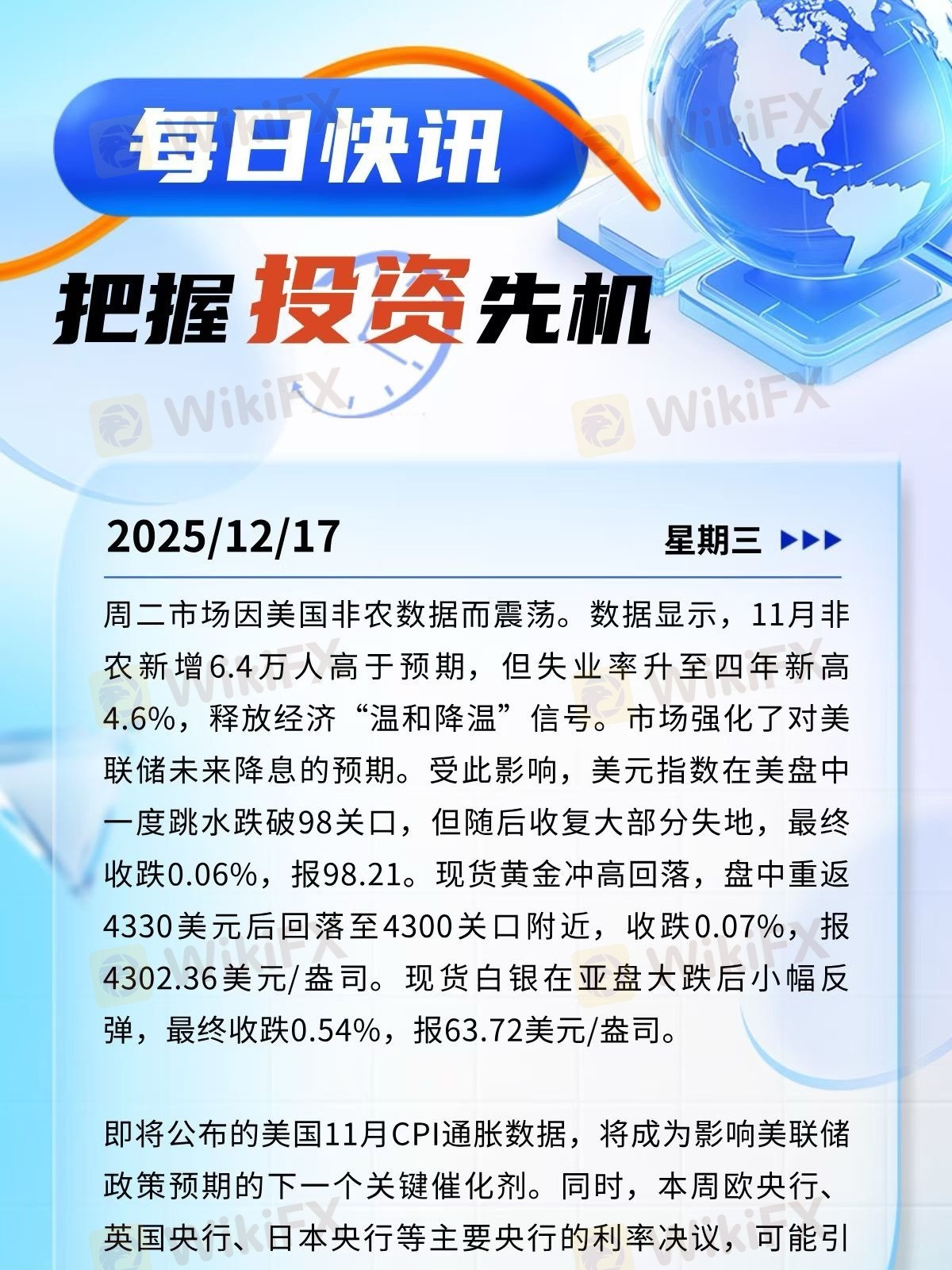 PowerTrading市场快讯(12月17日):非农数据释放降温信号 美元黄金震荡蓄势待发