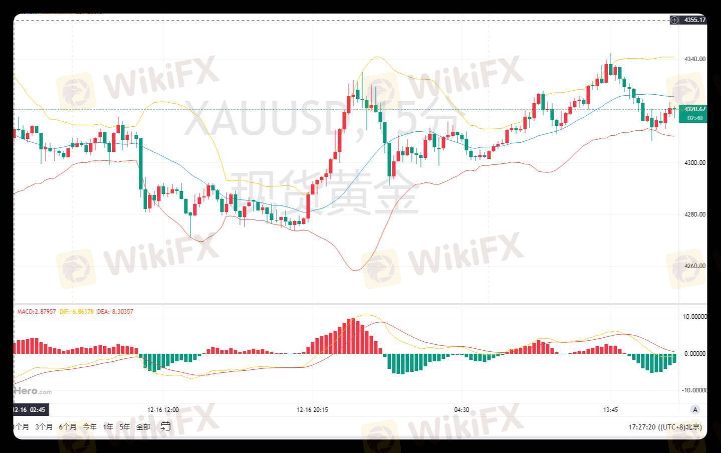 现在进入刚刚进入欧盘,价格完成了自4308的反弹,从30分钟均线系统的走势来看,价格还不够稳定,比较理想的参与点位在4300-4292美元支撑区域,密切关注欧洲交易时段的企稳信号。如果欧洲交易时段未出现第二波下跌行情,可考虑建立多头头寸,以期在晚间交易时段把握反转机会