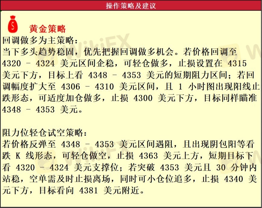 ✨黄金受获利了结与美元震荡影响呈现整理态势,伦敦金现今日开盘 4338.6 美元,早盘探低 4324.21 美元后震荡回升,午盘触及 4342.7 美元(日内跌 0.07%),现报 4335.44 美元。技术面多头趋势未改但动能放缓,4 小时 MACD 高位走平,今日大概率围绕 4320-4350 区间震荡。