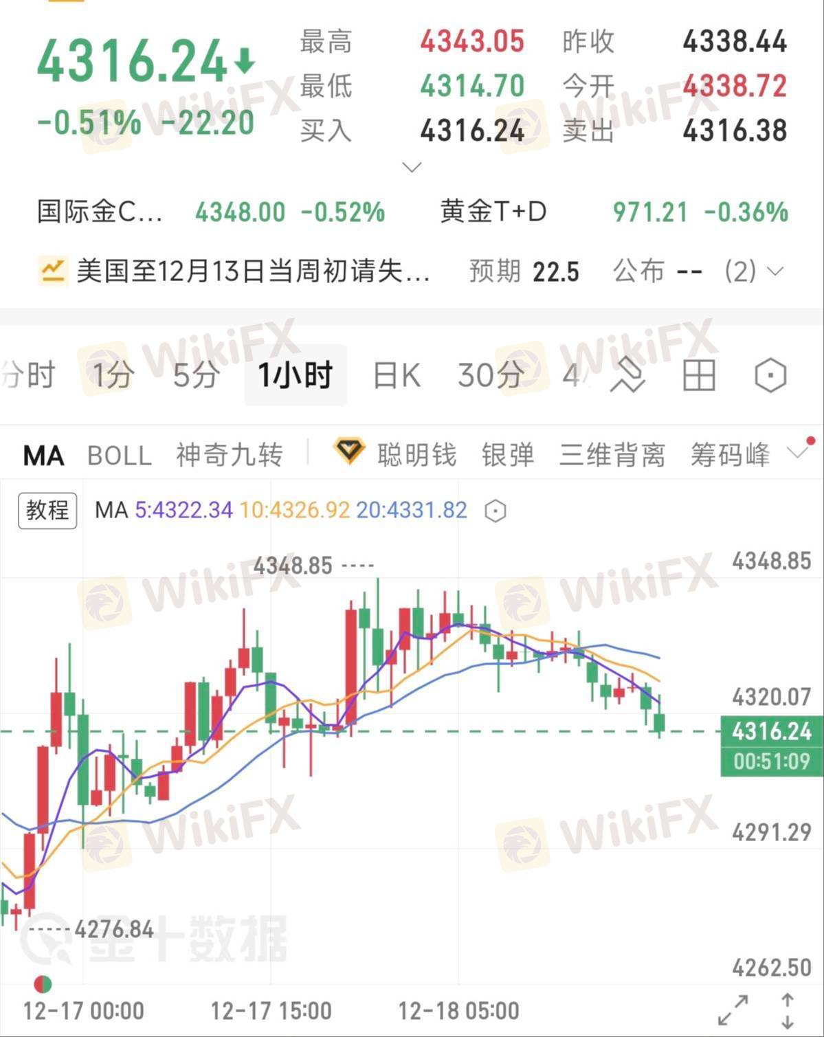 从1小时K线盘面看,价格在4340上方遇阻后连续收阴,阴线实体逐步放大,显示上方抛压持续加重,资金短期撤离迹象明显,整体呈现震荡下行的偏弱格局,短期空头动能进一步释放。