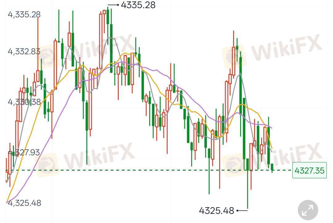 从1小时和4小时周期来看,当前仅呈现缩量弱势震荡信号。虽大趋势依旧偏多,但4350一线压力未受丝毫威胁。美市开盘后,价格于4小时布林带中轨附近拉升,需突破4338才能向4350发起冲击,多头建议耐心等待。
