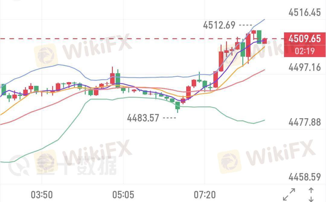 日内短线若先回落,可在4458附近布局多单,保守者可等待4455一线再择机参与,止损设置在4451下方,目标依次上看4482、4500;若价格突破4500关口,可进一步上探4512、4520及4532区域。本轮上涨的关键压力区间需关注4568-4570。