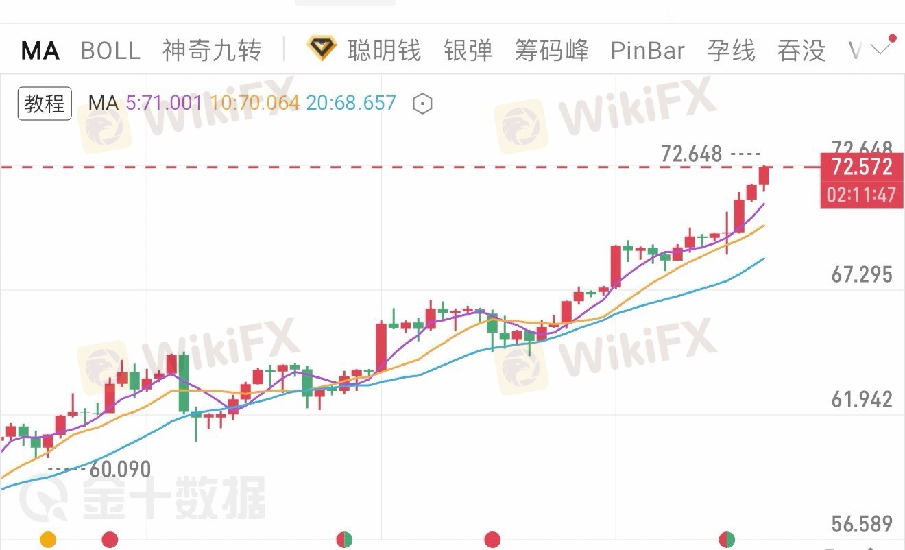 第一, 针对已有多单的朋友:建议先行兑现30%-50%的盈利落袋为安,同时将移动止损上移至70.8美元一线,一旦价格跌破该位置,果断离场观望,避免到手的浮盈再度流失。