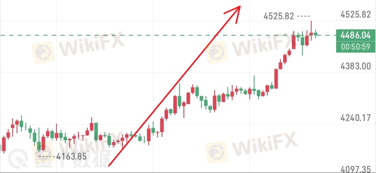 现在突破新高来到了4500上方,300多美金了。多单都吃饱了吧?