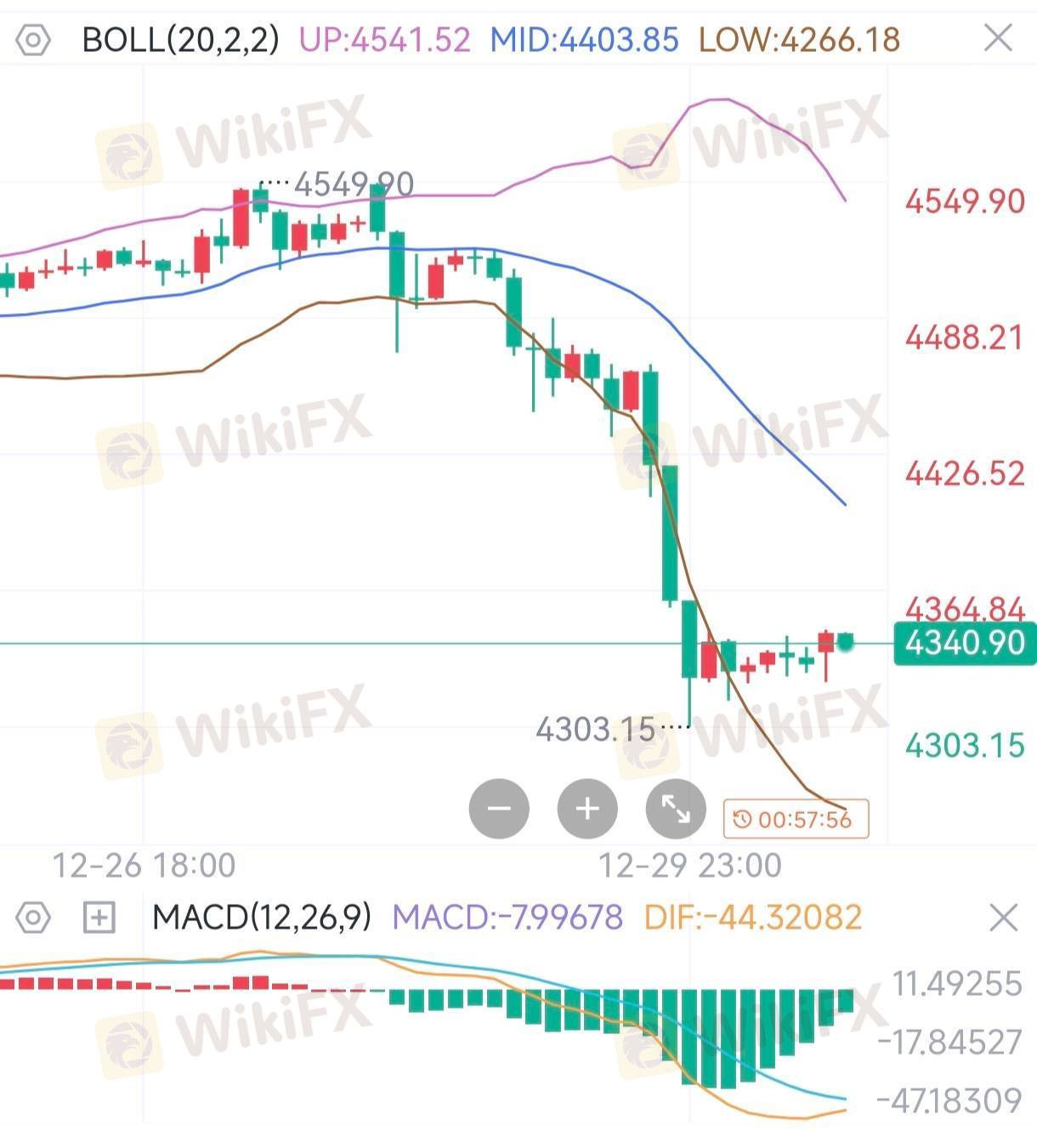 最近现货黄金的走势堪称“急转直下”,从4550美元/盎司附近的高位一路砸到4303的低点,目前小幅回弹至4340附近,1小时K线图里这波急跌直接打破了前期震荡格局,让不少投资者措手不及。
