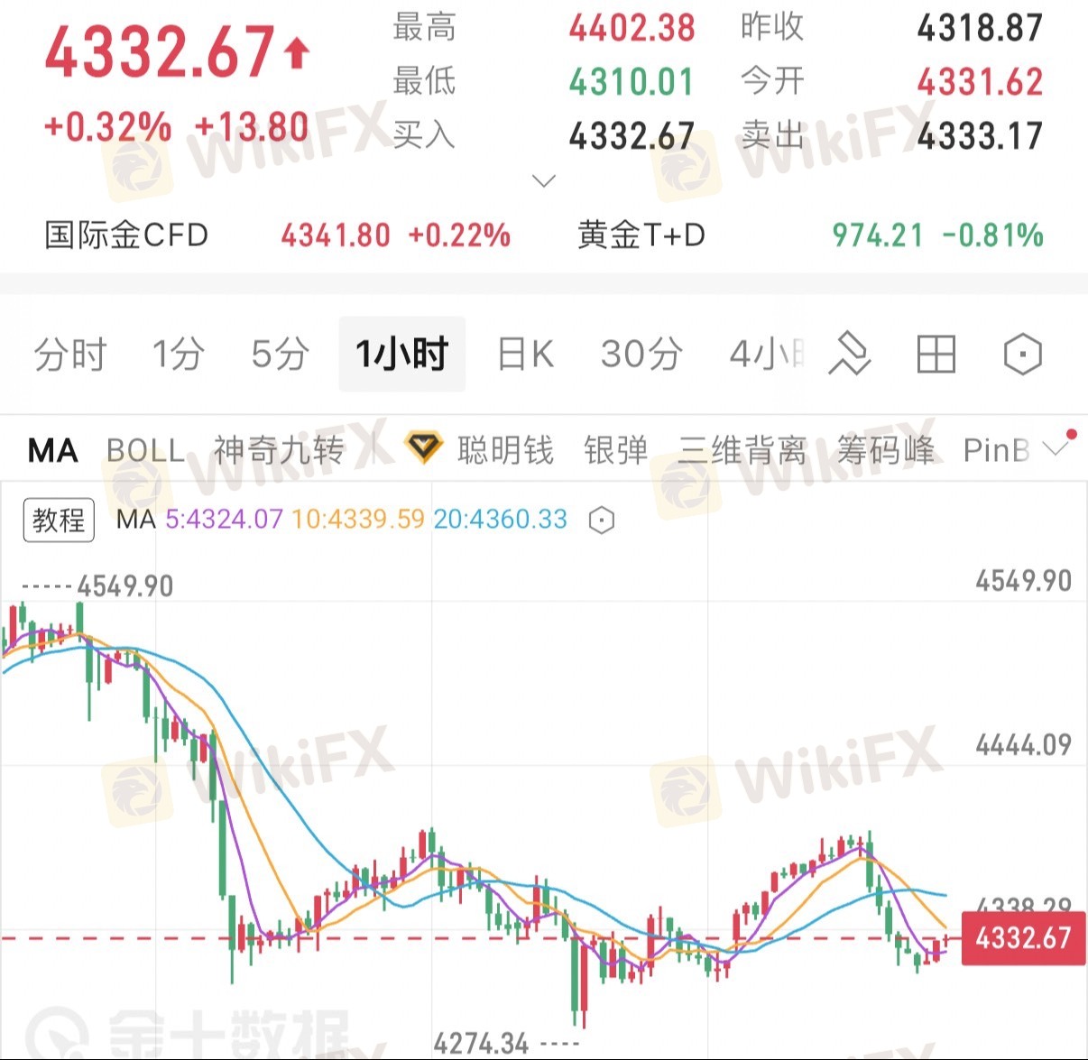 周五现货黄金走出极致波动:开盘跳空12美元暴涨,盘中触及4402美元高位;美盘前夕突发多头抛售潮,金价狂泻92美元,回吐全部涨幅。