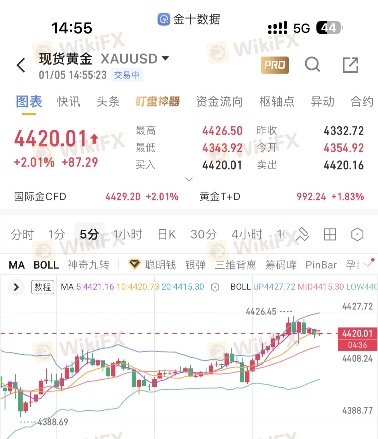 亚盘开盘之后一波迅速拉高触及4421一线然后目前回踩4400关口,午间我们回踩继续多!