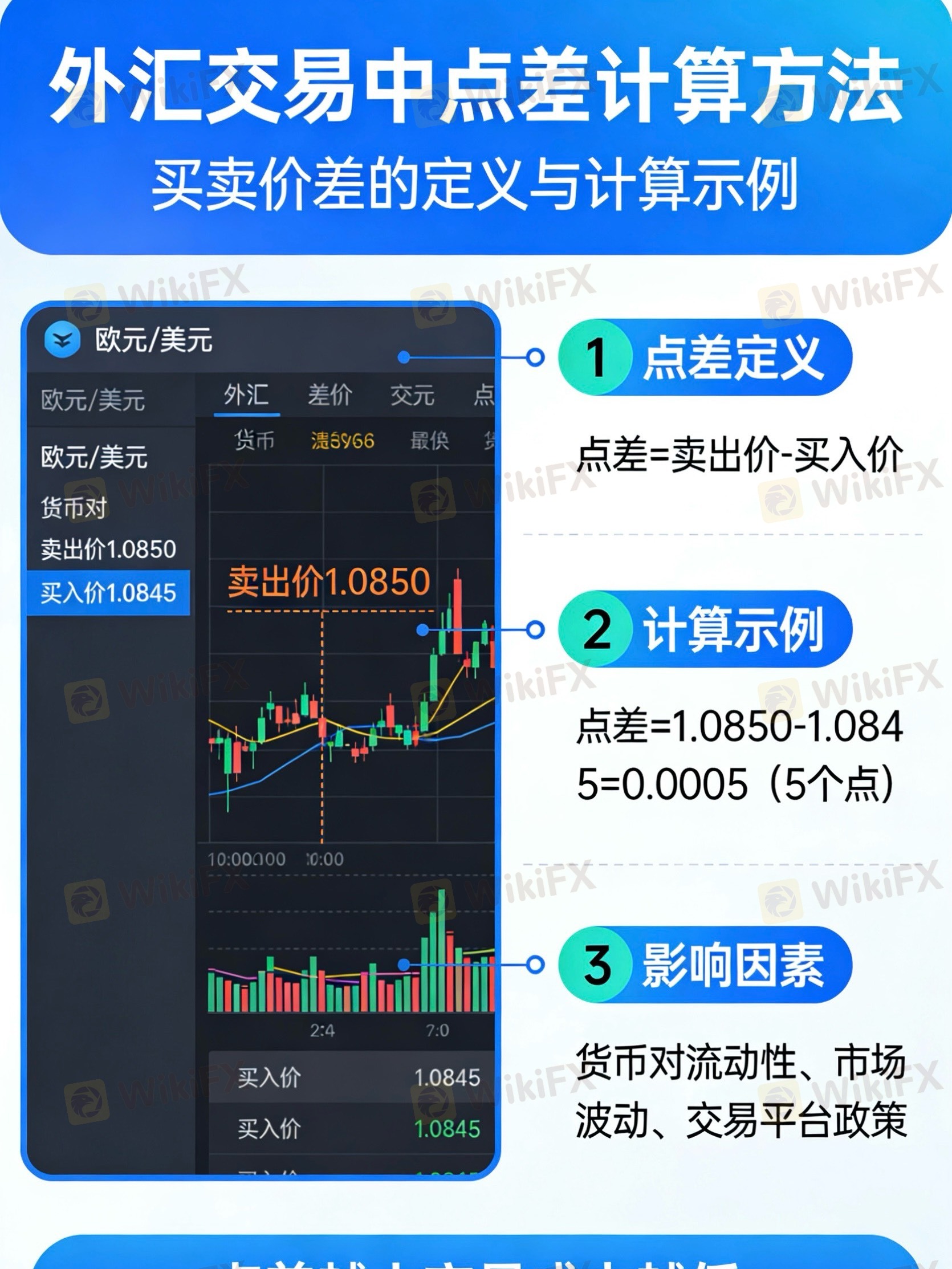 1. 基础公式:点差=卖出价(Ask) - 买入价(Bid),结果直接换算为“点”;