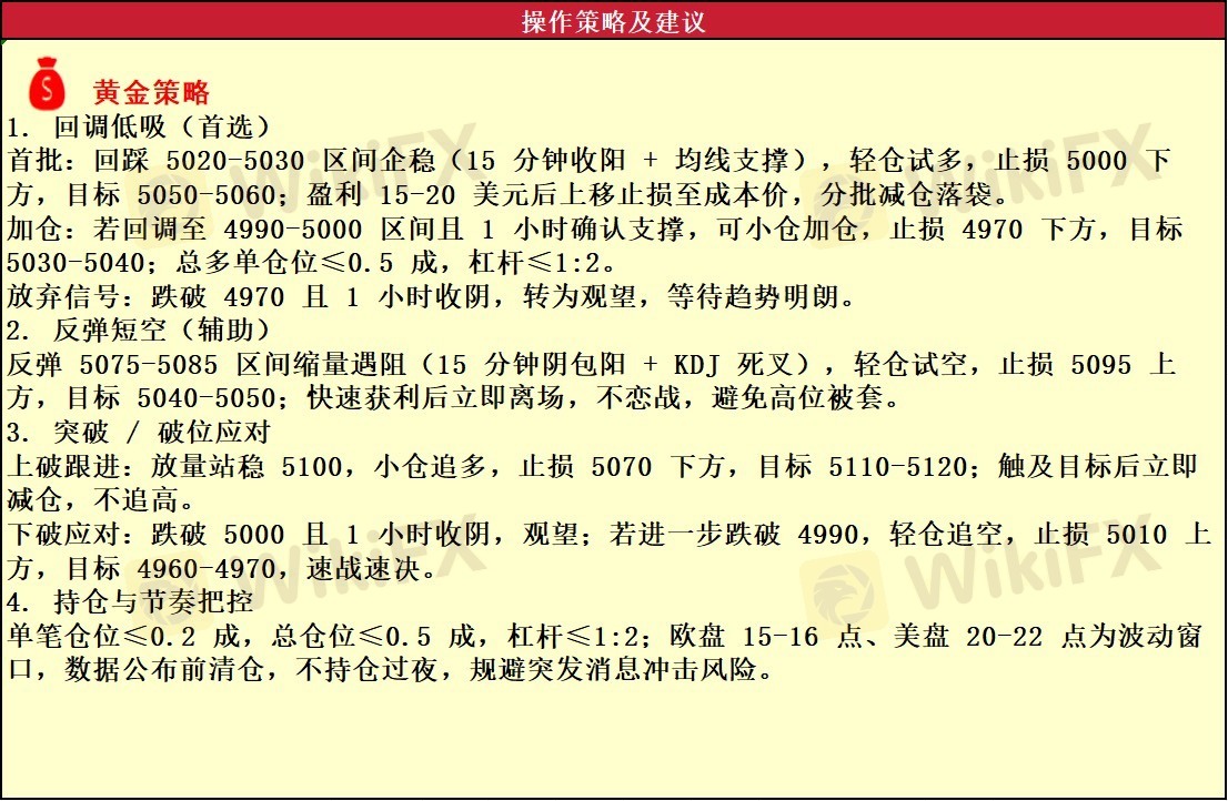 ✨预测黄金运行在5010-5080区间,5060美元成新高后核心支撑,5010美元对应日内低点支撑坚实。建议5040-5050区间分批做多,止损5000美元下方,目标5070-5080美元;突破5080美元可加仓,上看5100美元,忌追高。