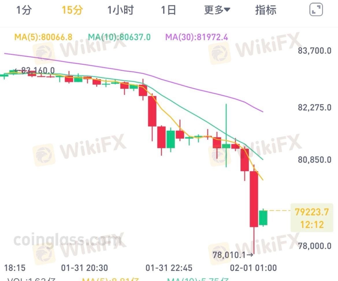 BTC跌破79,000 USDT,OKX报价约78,990 USDT,24小时跌幅约4.66% #BTCUSD