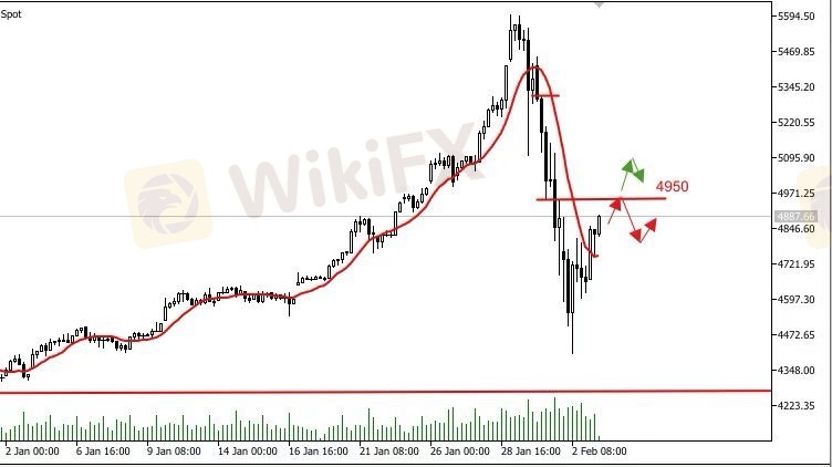 不利的一面是,如果跌破 4800 美元关口,可能会重新测试之前的低点区域,从而加剧短期波动。