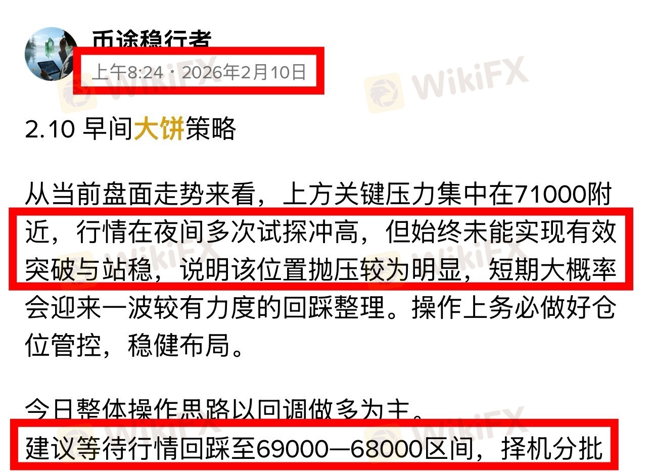 思路很明确: 回调到69000–68000附近分批布局多单,实际行情也一直在此区间反复拉扯,给足了上车机会。 公开思路,自行掌控