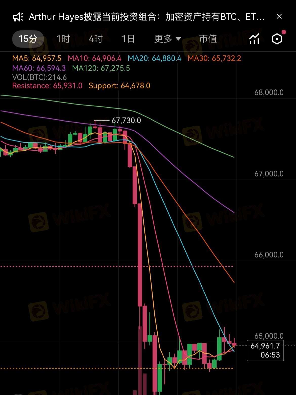 ◦ 跌破64670(4小时级别)→加速下看63730–62730