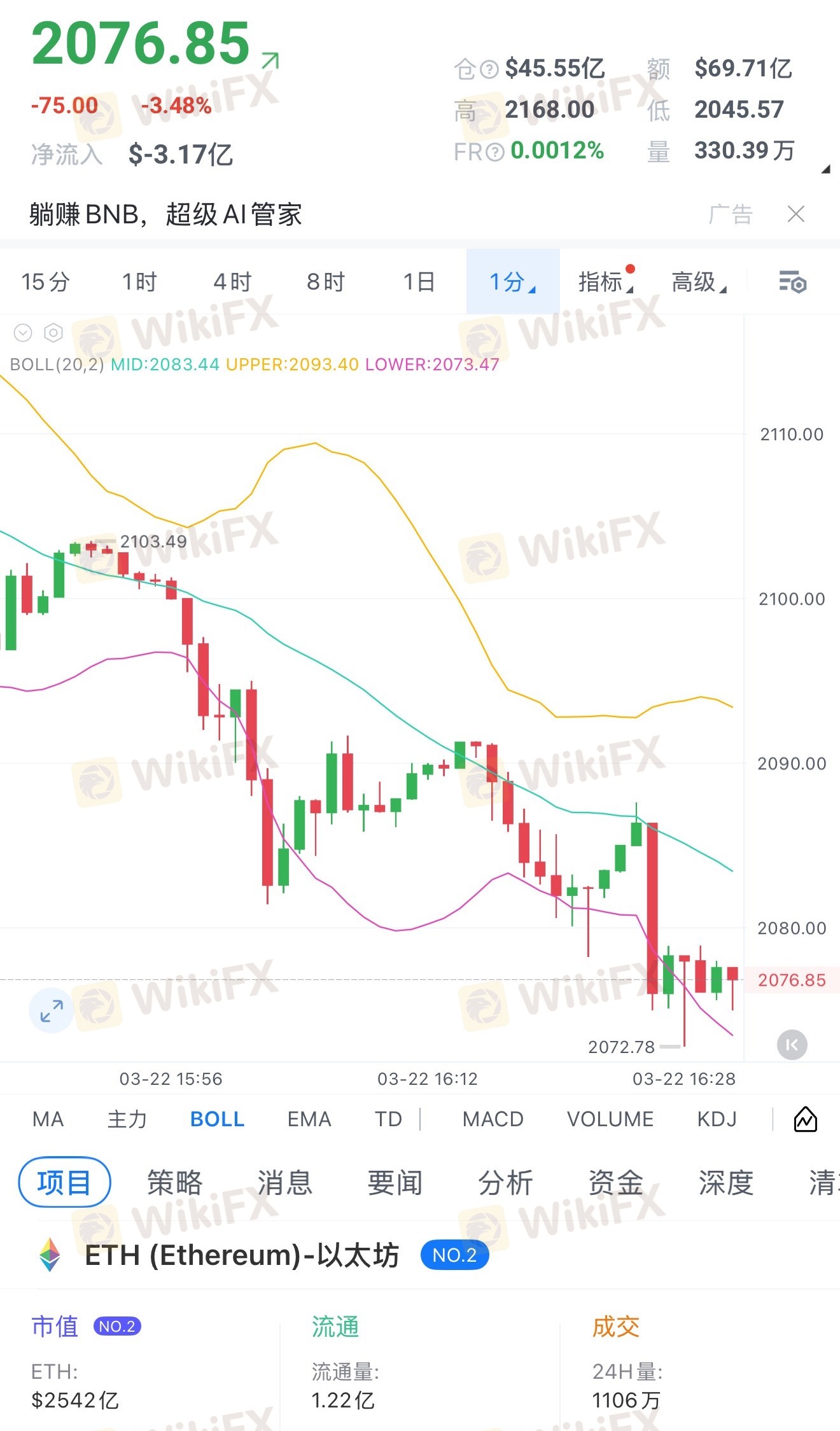 以太现在处于高位回调后的震荡阶段,虽然短线还偏弱,但关键支撑没跌破,指标已经跌不动了,有止跌反弹的机会,适合等信号再做多。
