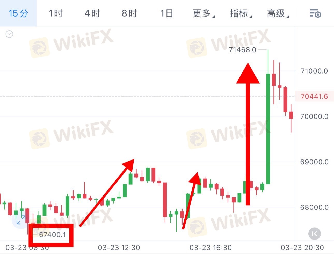 下方关键支撑67000,上方第一压力位69000,全天行情多次验证该区间有效。