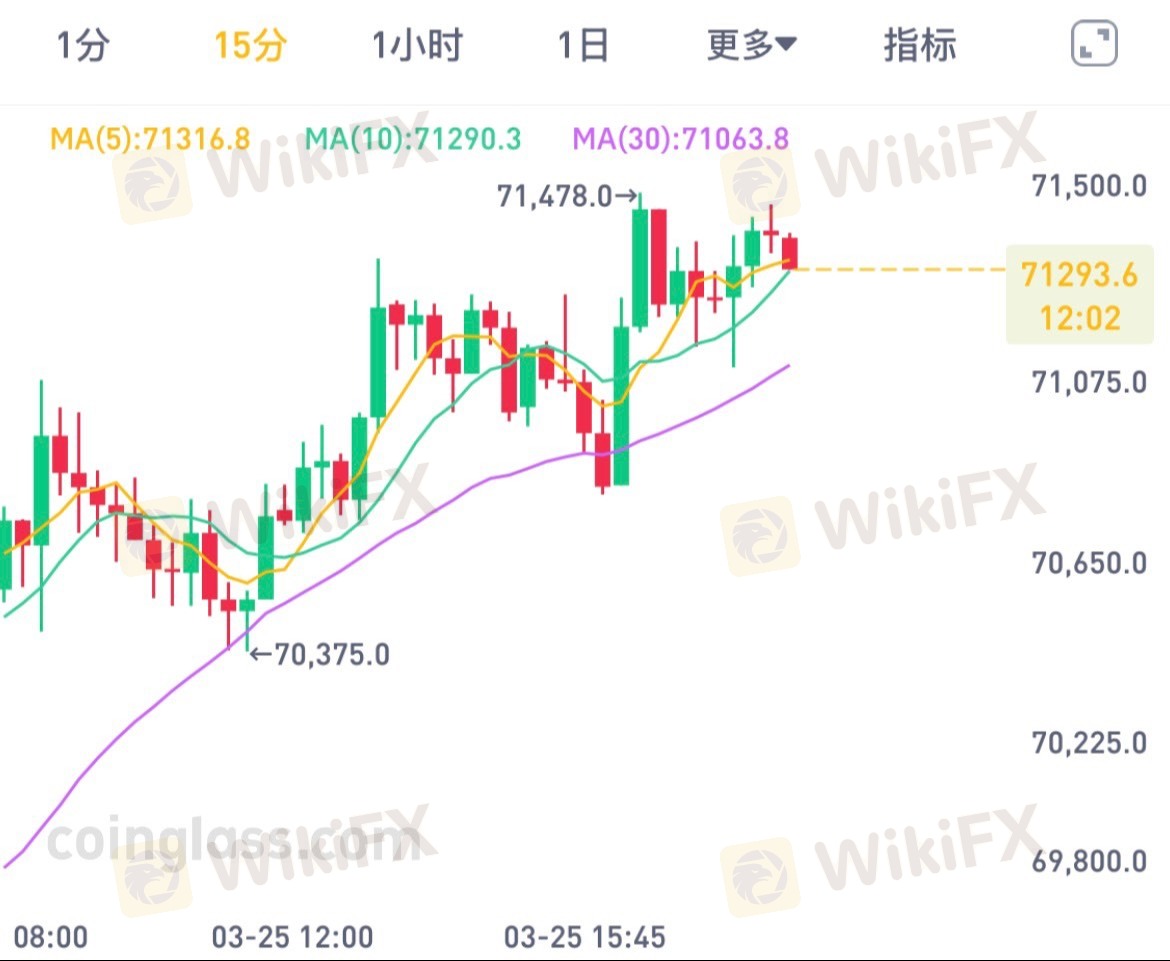 大饼小时级别已经突破三角整理,上方关键阻力71490,此前三次试探均未成功。只要价格能守住三角上沿,突破71490只是时间问题,只有突破这个位置,才能脱离68825-71490的盘整区间打开上行空间。