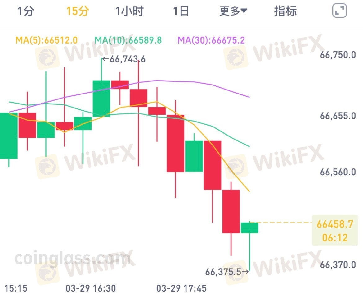 从形态上看,上方连续三根流星线冲高回落,多头明显乏力。想真正走反弹,收盘价必须站稳 66781 上方,连续三次上攻都没能站上这个位置,反弹根本无从谈起。