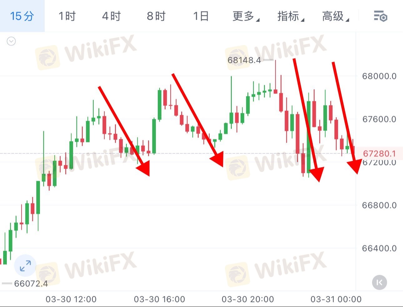 第二波:67920 承压回落至 67333,走出587 点空间