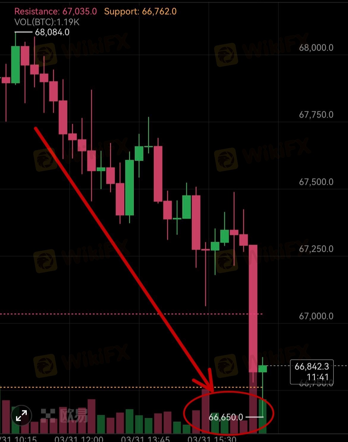 午间思路白纸黑字写死:放量跌破67223,反抽无力,右侧追空。