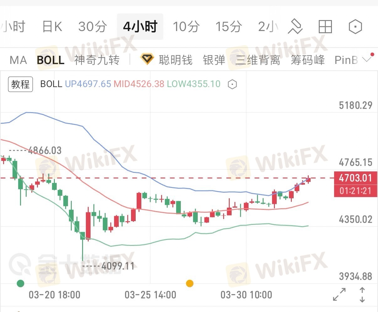 当前价格4703已经突破前期4700关口的关键压力,上方空间被彻底打开,短期上方第一目标看向4765-4800区间,下方支撑则上移至4650-4680区间,回踩即是做多机会。
