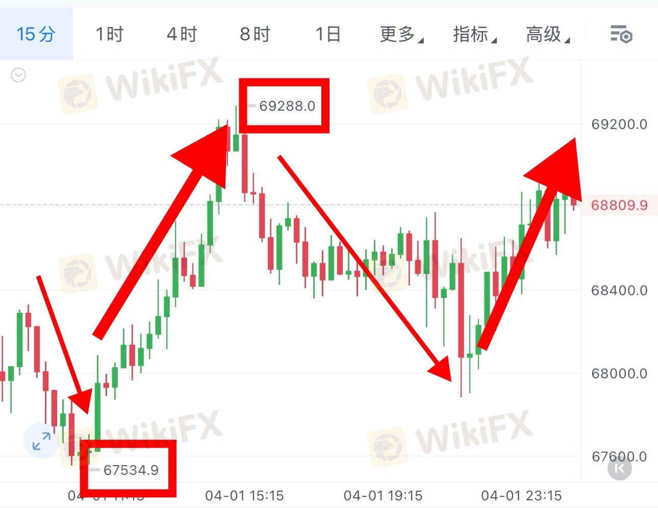 上方目标68500-69500,承压确认即可顺势继续抓回调