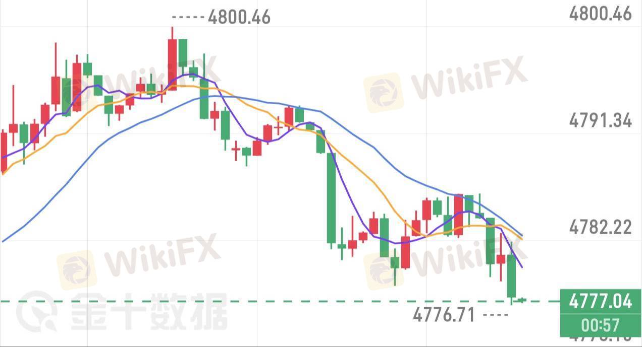 昨日黄金整体维持高位偏强震荡上行格局,盘中稳步拉升至4793.05高点后承压回落,尾盘依托布林带中轨企稳收报4756.67,行情阶段性冲高后进入整理蓄势阶段,多头动能有所放缓,短期方向有待进一步明朗。