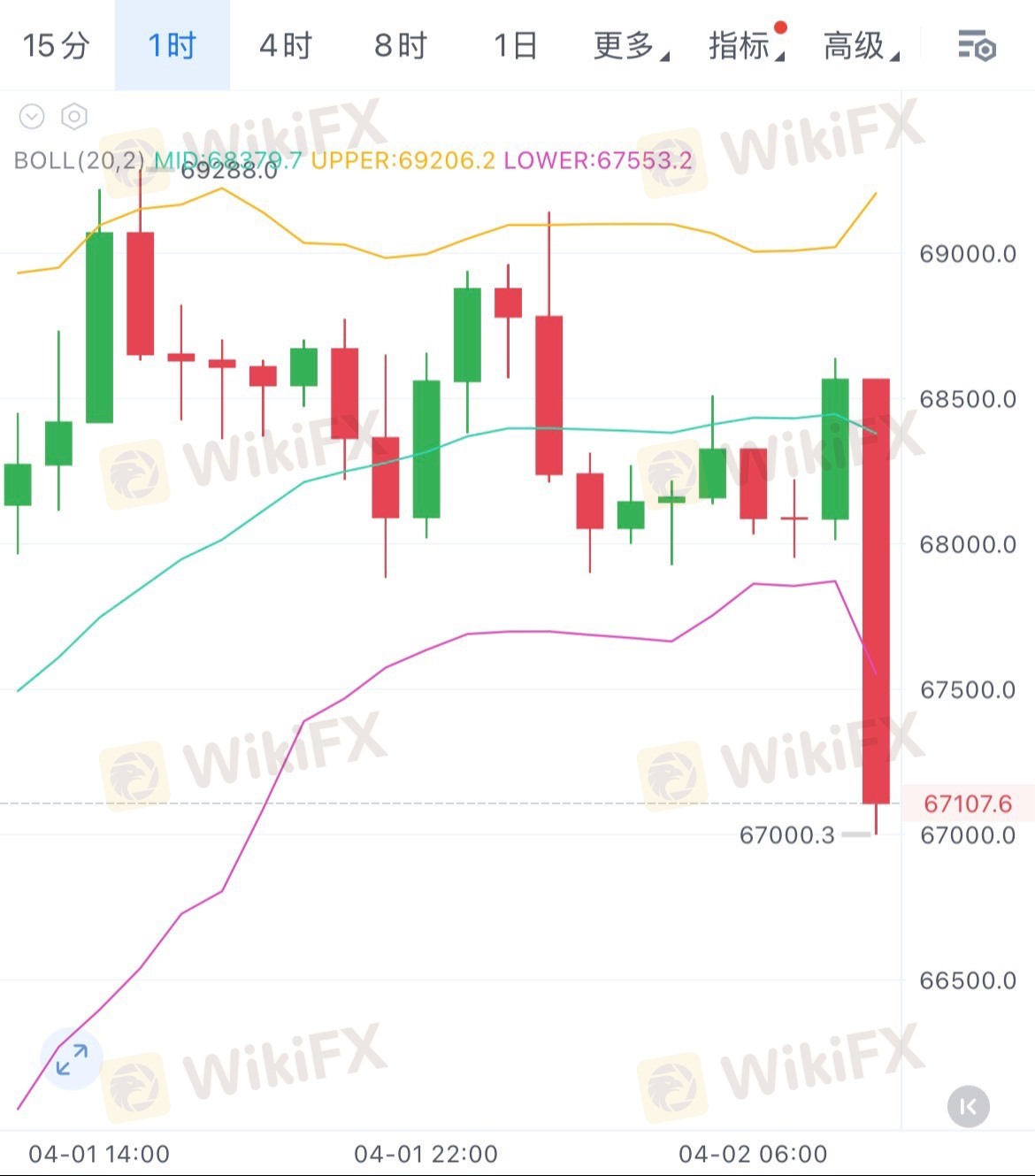 1小时级别放量急跌击穿布林带下轨,完成空头动能集中宣泄,价格进入极端超跌区间,短期无持续下探基础,反弹修复为大概率走势。