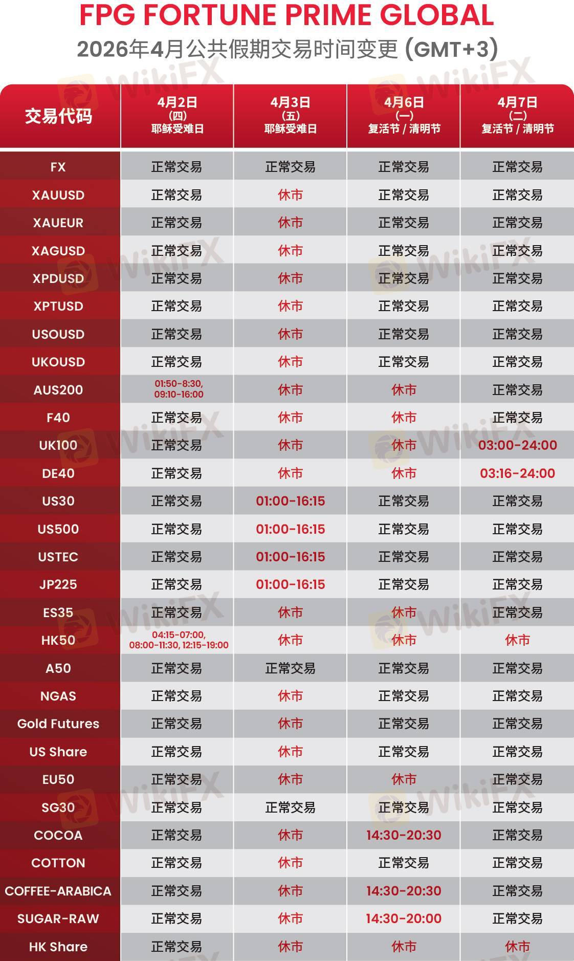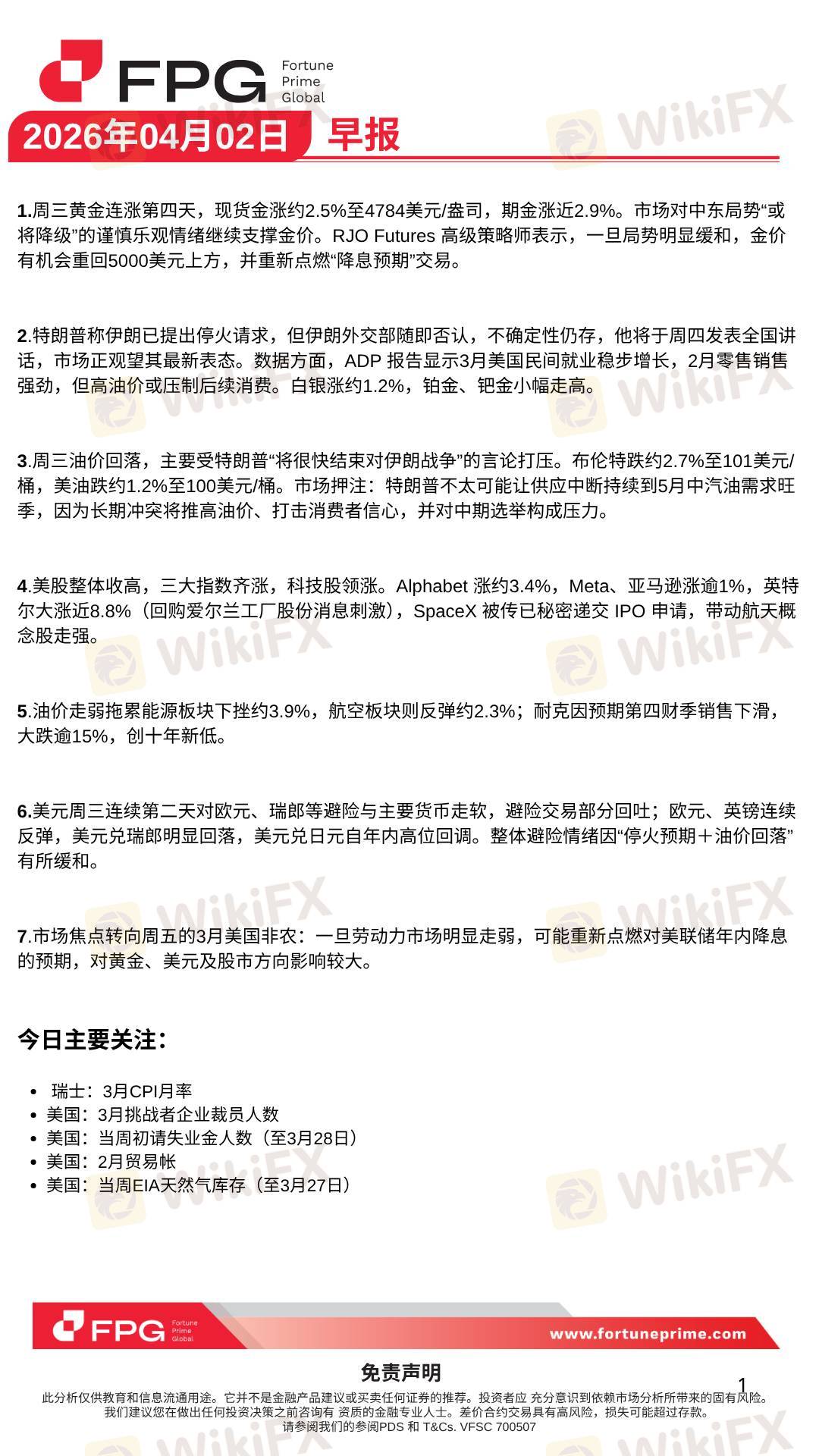 🟡 黄金:现货黄金升至 4800美元/盎司附近,连续第5日上涨(美元走弱 + 避险情绪)🛢 原油:油价回落超1%,报 98.85美元/桶附近🌍 局势:Donald Trump 表示,美伊冲突或很快结束,市场情绪趋向谨慎乐观温馨提示:明天是 Good Friday(耶稣受难日)多个市场将 休市 / 提前收盘