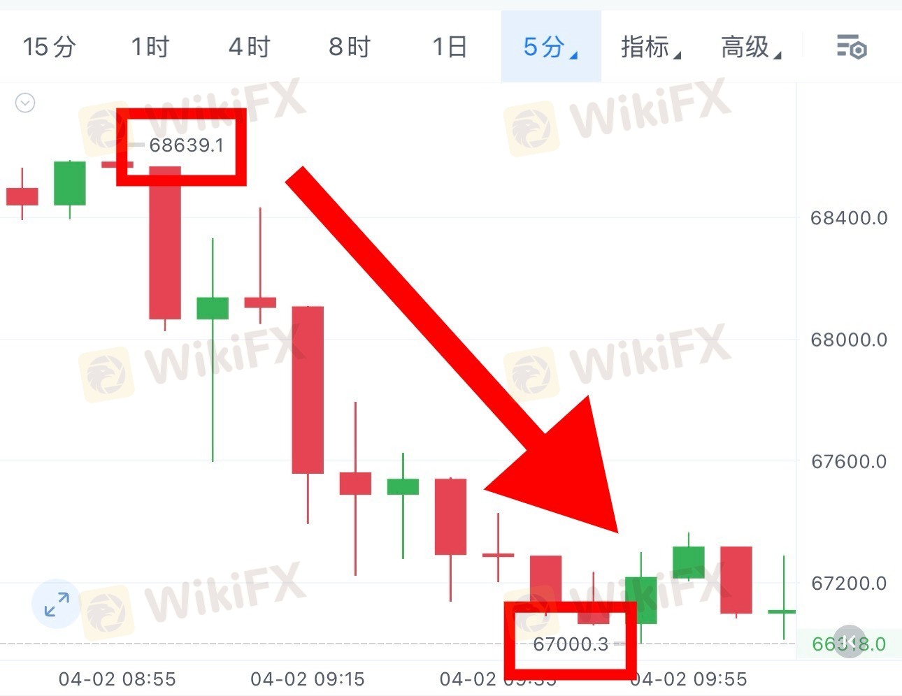 于67000支撑位置企稳震荡。