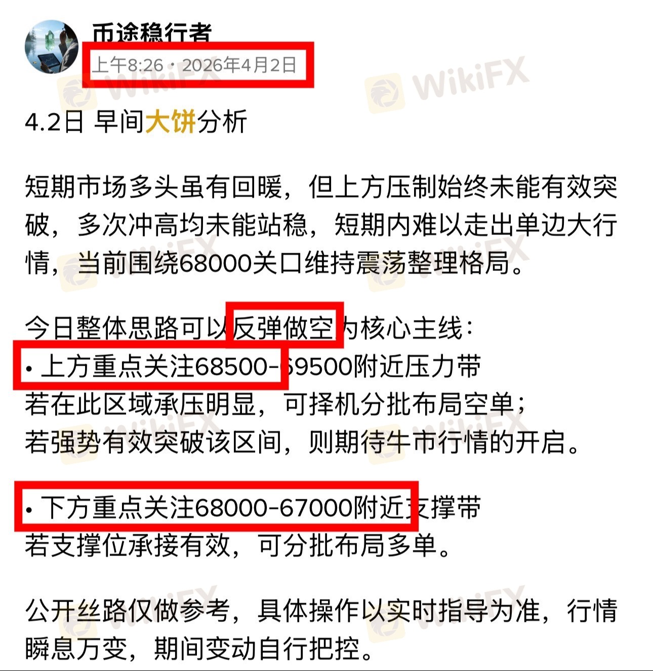 此前丝路早已明确,整体思路以反弹做空为核心,上方关键压力68500,下方阶梯支撑68000-67000,方向与区间提前划定。