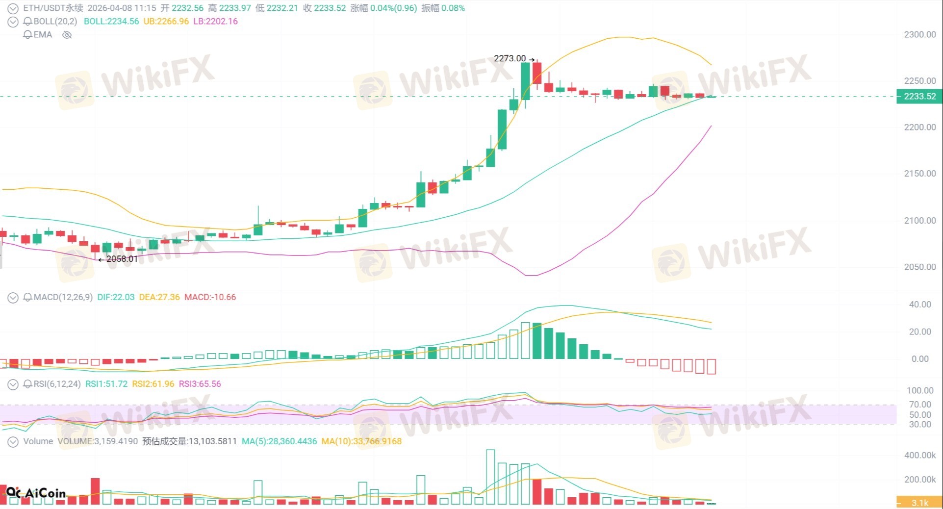价格冲高后快速回落,RSI从超买区间回落,成交量明显萎缩,超买后的获利了结回调信号明确,短期反弹无力,有进一步下探需求。