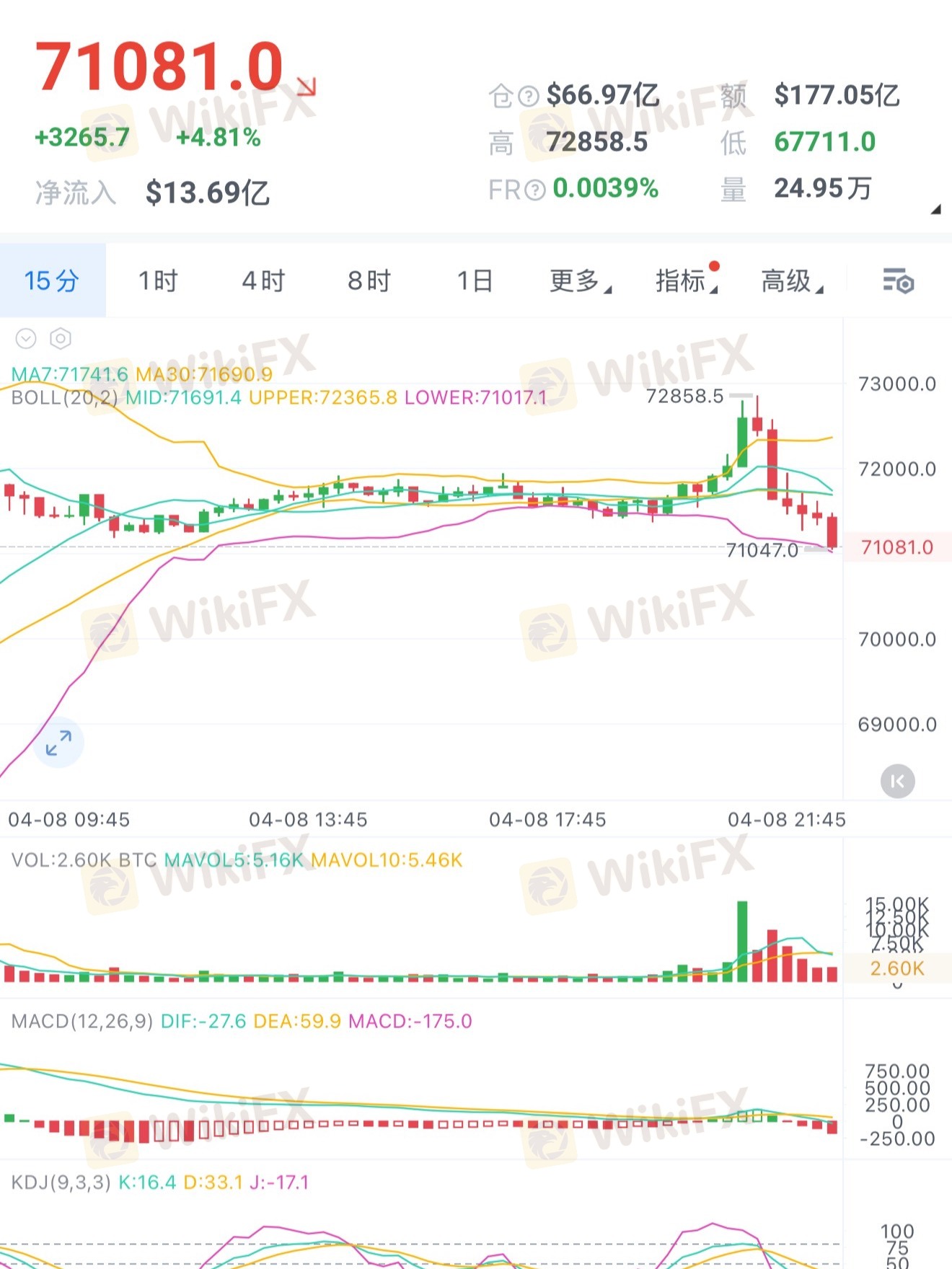反弹至71500附近空