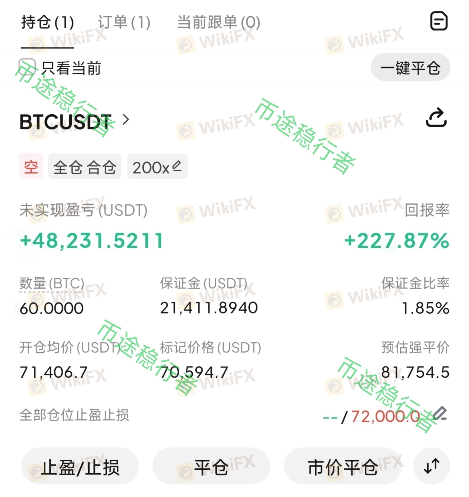 上行动能逐步衰减,市场大概率维持区间震荡,突破前高难度较大,上方第一压力位72000为关键承压节点,承压无力即顺势布局空单。