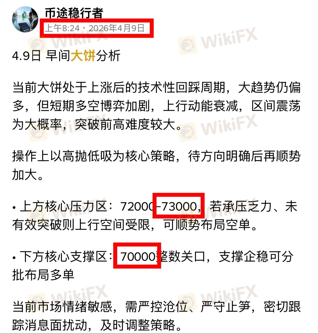 下方核心锚定70000整数关口支撑,支撑有效即布局多单,上方第二目标直指73000。