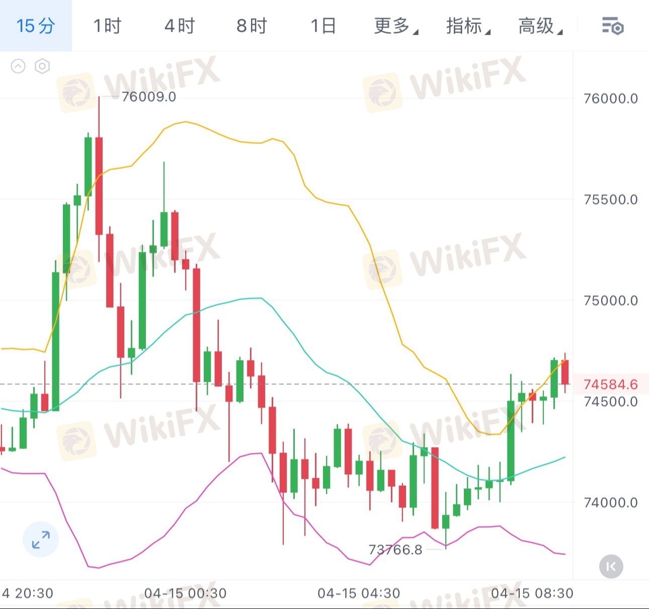 操作建议:回调至74000-73500可北上