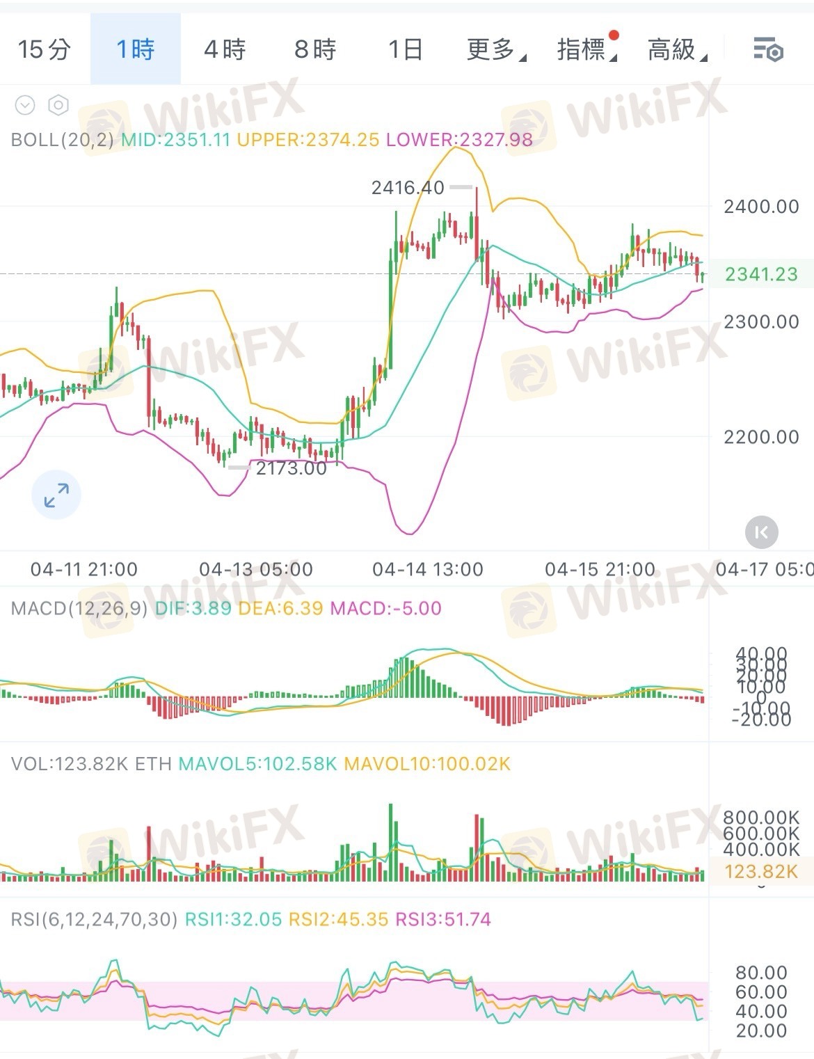 • 信號提示:MACD出現死叉(DIF<DEA,紅柱初現),說明1小時級別有回調需求