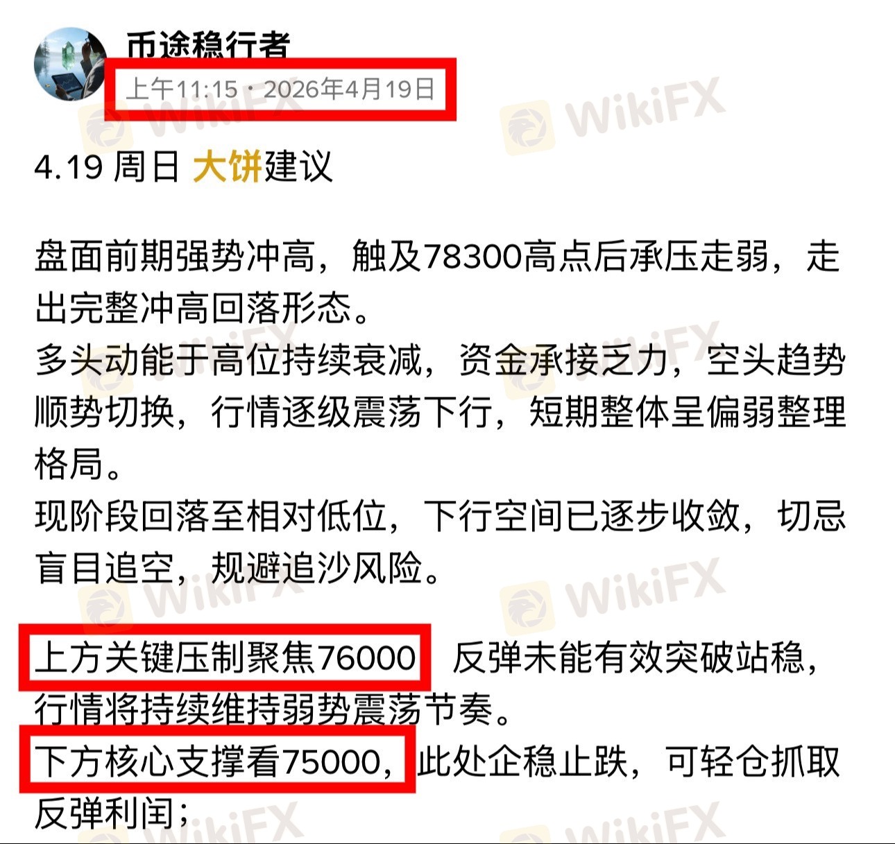 后续行情强弱,重点紧盯75000支撑有效性,以此判定本轮调整节奏。